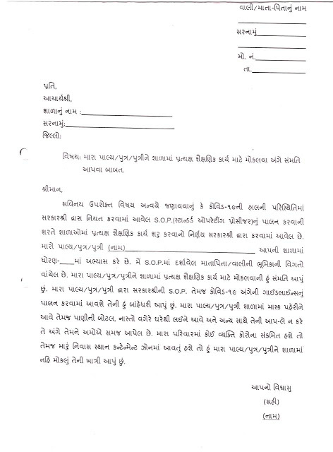 માર્ચ 2020 થી કોરોના મહામારી ના કારણે લોકડાઉનથી બંધ રહેલી પ્રાથમિક શાળા હાલ ધોરણ 6 થી 8 તારીખ 18/02/2021 થી ખુલશે તેનો પરિપત્ર તથા ઓફિશિયલ વાલી સંમતિ પત્રક pdf ફોર્મેટમાં અહીં મુકેલ છે.